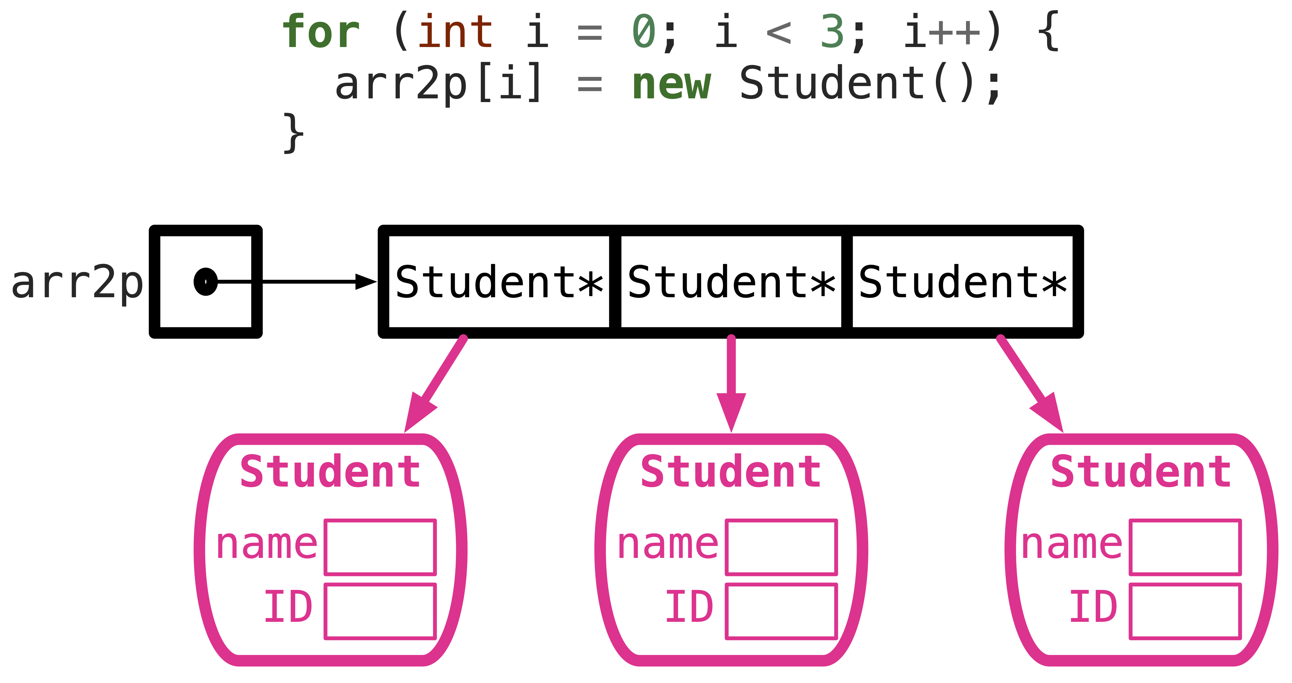 objects we want to create. This returns the address of the first element of the array, which we can store in a Student